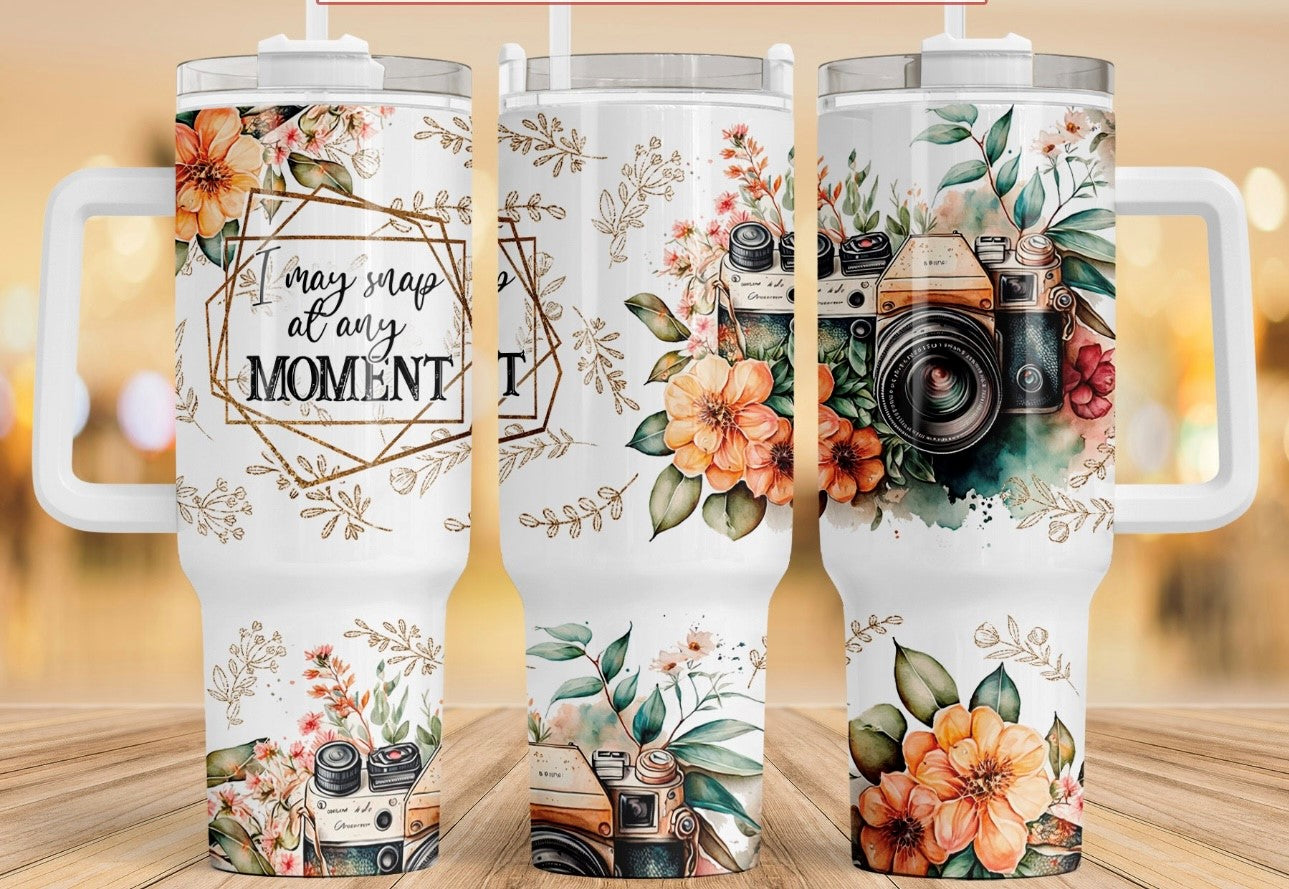 Introducing our 40oz Stainless Steel Tumbler - the perfect companion for photographers. Adorned with a playful "I may snap at any moment" floral design, this tumbler reflects the wit and charm of your profession. It comes complete with a secure lid and straw, making it ideal for both capturing moments and staying refreshed on the go.