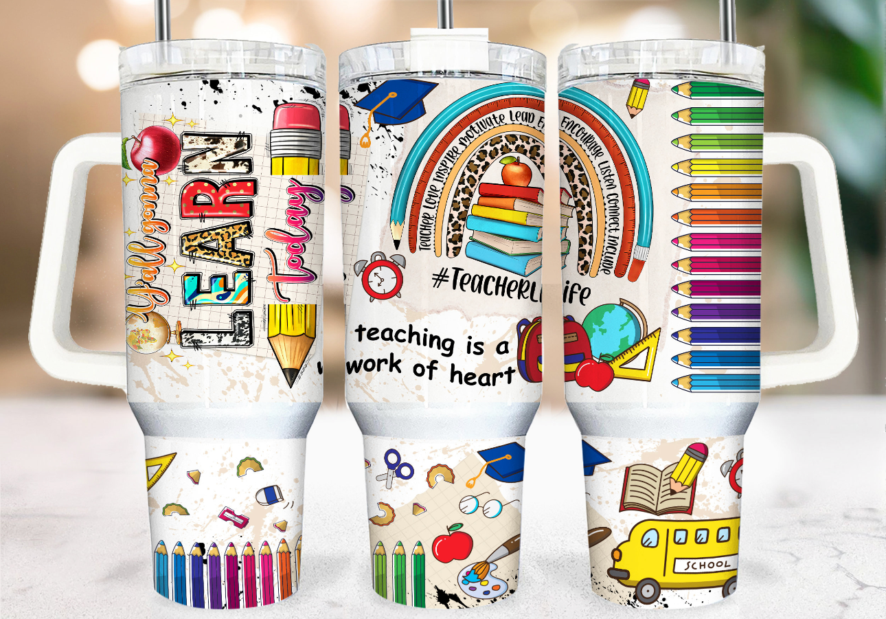 Generous 40 oz Capacity: Whether your favorite teacher needs a jolt of morning coffee or a refreshing drink during the day, this tumbler boasts a generous 40-ounce capacity to keep them hydrated and energized.