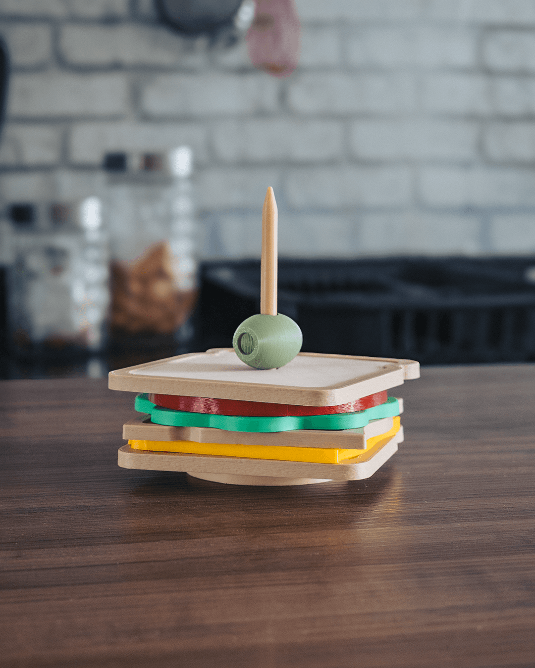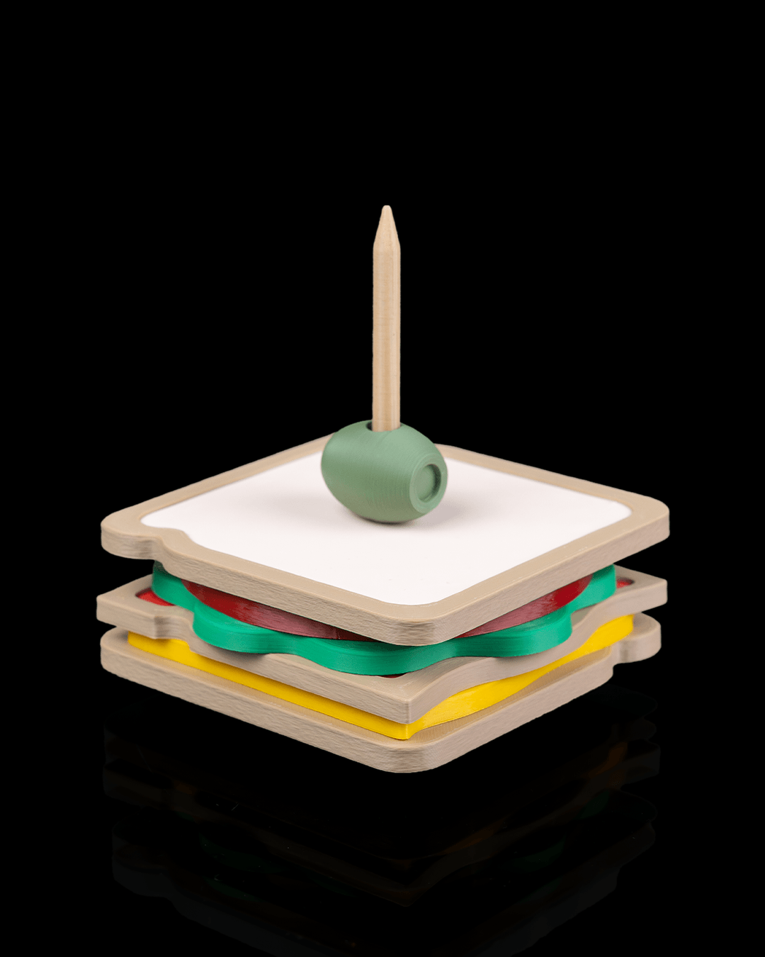 The olive topper keeps everything together and adds the perfect finishing touch — because presentation matters, even for your coffee table.